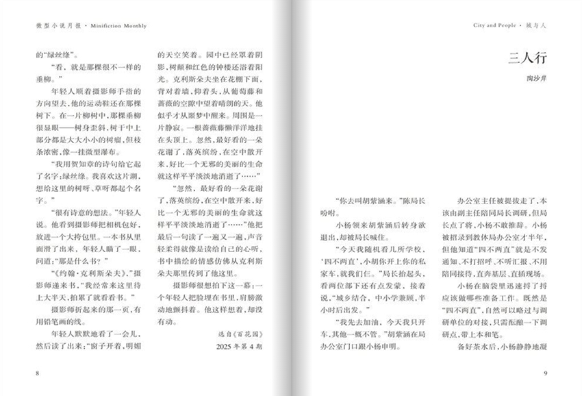 雜志強調微型小說“螺螄殼里做道場”的藝術特質,要求作者在千字內完成完整敘事、鮮明人物與深刻主題。其作品以精巧結構、意外轉折見長,結尾常留思想回響。例如,2025年第1期收錄的《畫匠高》通過細膩筆觸揭示人物情感,而《一個老上海人的三則訃告》則以社會地位為切口,展現人性復雜。雜志還曾承辦第四屆世界華文微型小說大賽,推動華語微型小說全球化傳播,入選作品被廣泛轉載并納入中小學模擬試題庫。