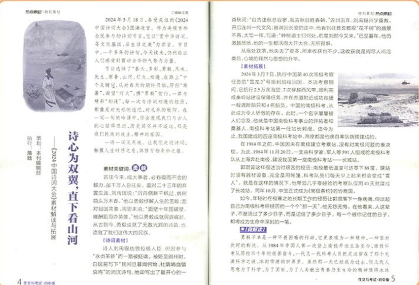 《作文與考試》的核心特色在于其極強的針對性與實用性。它不僅致力于從根本上激發學生的寫作興趣、培養思辨能力,更直接服務于中考、高考等關鍵選拔性考試。雜志通過對命題趨勢的精準把握、對評分標準的深度解讀以及對應試策略的專業點撥,為學生提供了一套系統、高效的能力提升與備考方案,助力他們在重要考試中脫穎而出。